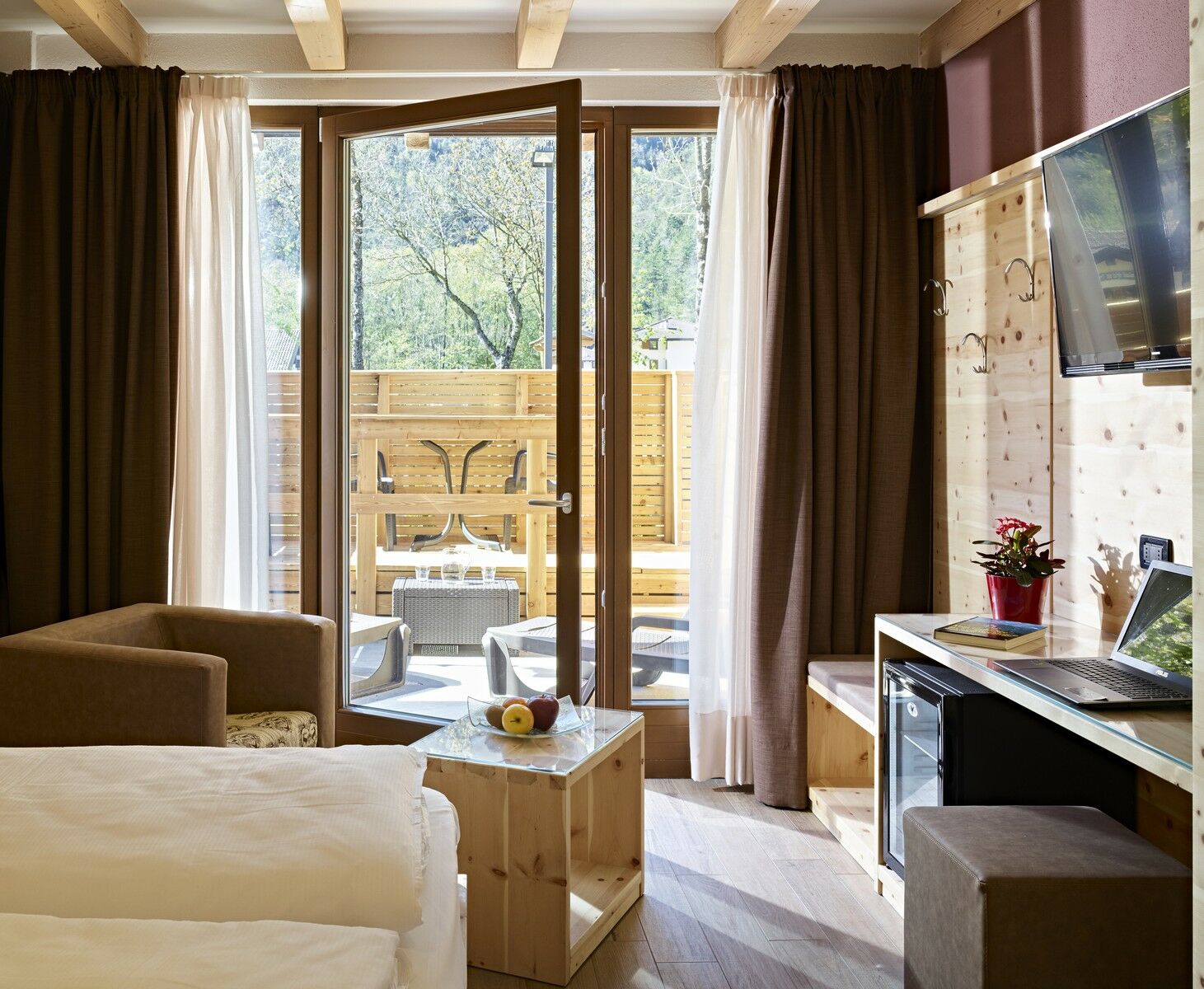 La nostra camera più recente, pensata in ogni dettaglio per regalare ai nostri ospiti un rilassante abbraccio in pieno stile alpino. Bio-Deluxe infatti è rivestita in profumato legno di cirmolo, essenza montana che con le sue proprietà calmanti riesce a favorire il benessere e un sonno riposante. La sistemazione si trova al piano terra, con bagno provvisto di doccia e con ampio terrazzino, arredato con tavolino e lettini. Il relax continua anche all’aria aperta, specialmente se viaggi con un amico a 4 zampe!